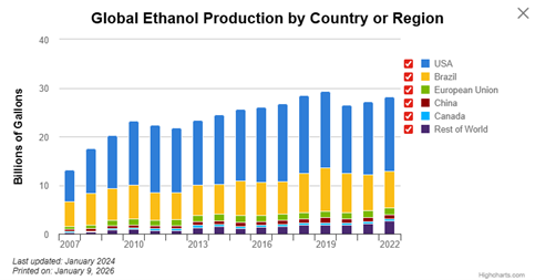 <図1. 各国のバイオエタノールの生産量>